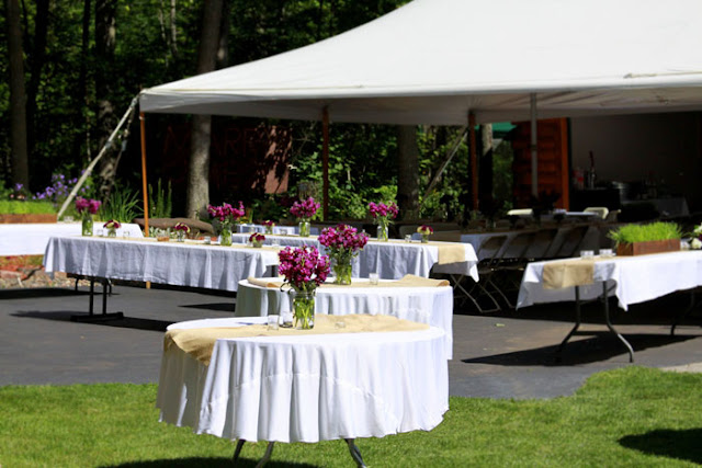 We rented a simple pole tent, for a low cost, that we somehow managed to make work! To cut costs we had to use the same chairs for the ceremony and reception. We also tried really hard to get linens to the floor…but that ended up being very spendy, as you can see we just used the caterer’s linens.