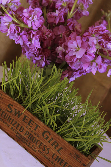 A week or two before the wedding I started growing wheatgrass (bought online) and we cut it to fit in wooden boxes
