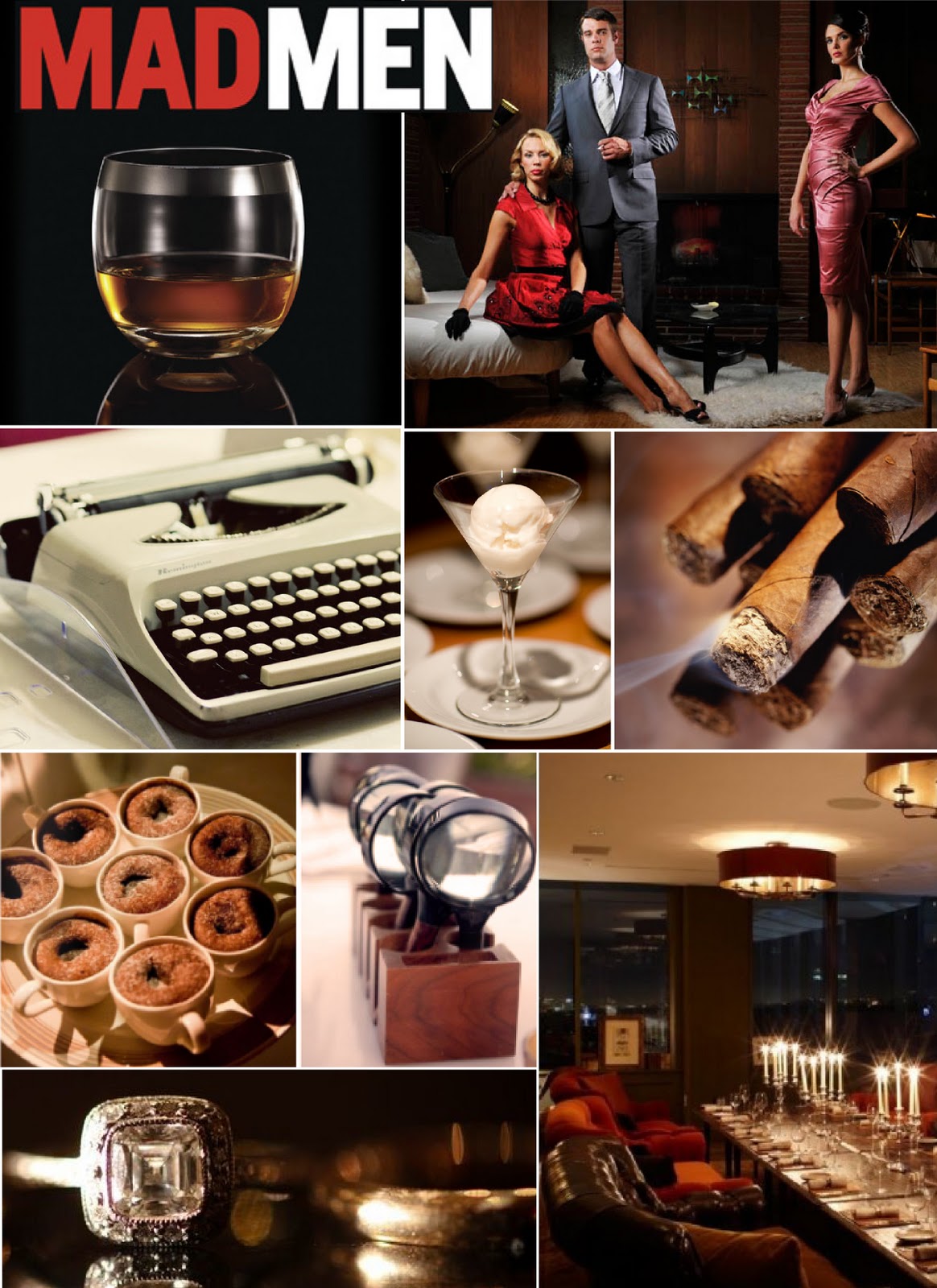 Okay so I haven’t seen Mad Men yet, but I have always loved the look and style of the 50’s-60’s. If only it was on Netflix! Anyway, since I love the style so much I thought I’d do a more masculine Mad Men inspiration board. It kind of reminded me of Alchemy Events graduation party in Utterly Engaged. Love it! Enjoy.