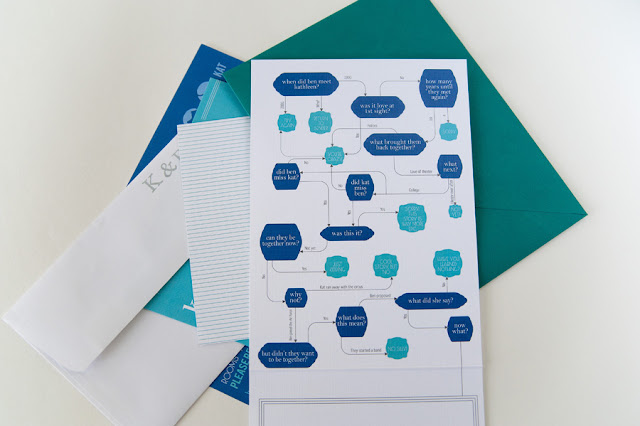 I really love when couples take that extra step outside the box when designing their wedding. Well, how adorable are these flow chart invitations! What a neat idea! If you can read it, the invite tells a little story about their relationship, and how they got to where they are today. So Personal, So Perfect. Enjoy! {via: Oh So Beautiful Paper}