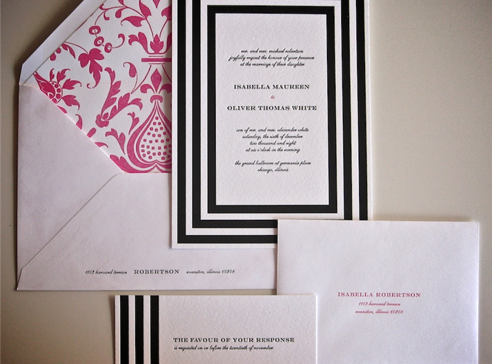 As I was frolicking around the blogger world I ran into a cute stationary shop called Gus & Ruby Letterpress. They specialize in everything from wedding invitations to birth announcements. The neat thing about them is that they prefer to get to know their clients one-on-one to create a unique and fitting invitation for their wedding. Their work is amazing so enjoy!