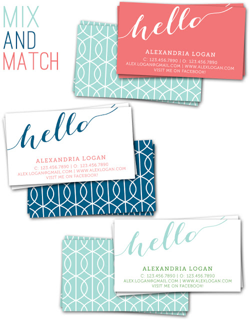 I feel like it has been awhile since I designed a calling card, so here is another one! I love the simplicity of this one, especially with the ‘hello’ calligraphy in the corner. I couldn’t decide what colors I liked best..so I did various colors. The best part is that you can choose your own colors, to match your business or to match your personality. Feel free to check out my shopand my digital calling cards (or mommy cards). Enjoy!