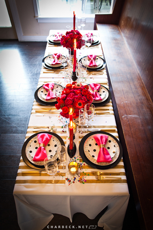 Cassandra over at Coco + Kelley just turned 30 and decided to celebrate it in style. She put together a beautiful birthday dinner for her and some of her closest friends. She originally wanted to do a black and white and metallic tabletop until she saw the cover of the one and only Martha Stewart Wedding Magazine. I definitely think that was a great decision to add that pop of red and pink. The tabletop flowed perfectly and created that intimate feel that all 30th birthdays should feel. I will keep that in mind for my friends birthday coming up in December. {Images via: Char Beck}