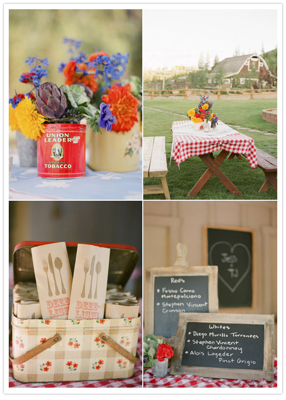Wouldn’t you just love to have a party like that before you get married! Checkered table clothes, vintage lanterns, picnic baskets, and line dancing. Please, I don’t know who would ever turn that down! The couples wedding is actually featured in the current issue of Brides Magazine, and I couldn’t even imagine the detail in the wedding, when there pre-wedding event is a hoedown! So enjoy and have a lovely Tuesday!