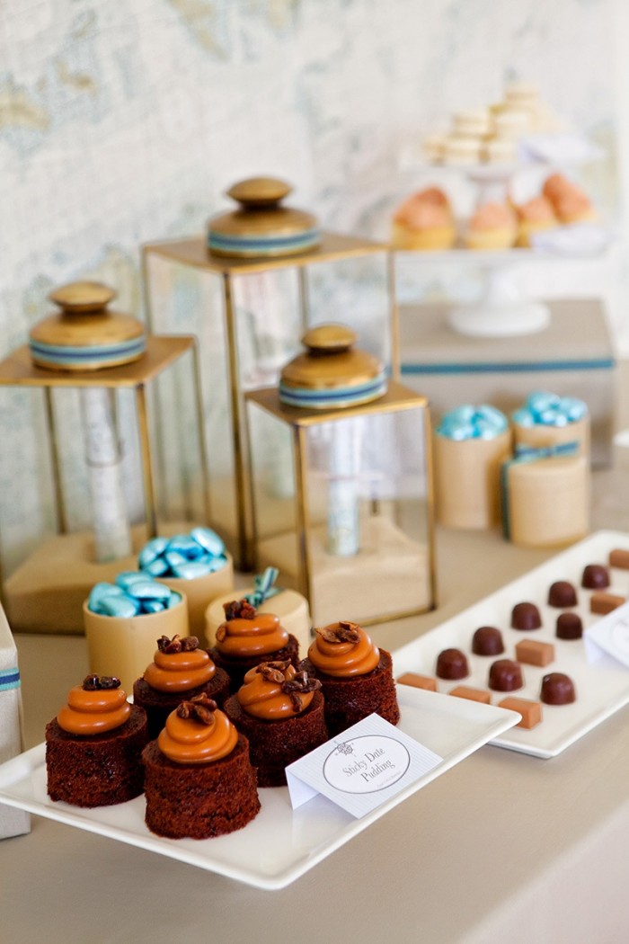 I don’t know about you but this dessert buffet is perfect for a destination wedding or a going away party. Sharnel from Sharnel Dollar Design created this beautiful gender neutral buffet for a Yachtsman’s 50th birthday party back in Brisbane, Australia. She did such a great job creating clean lines and incorporating masculine colors. I just can’t get over how well the bronze, brown, orange, and blue mix together! You can find this post on Amy Atlas’s blog, Enjoy!